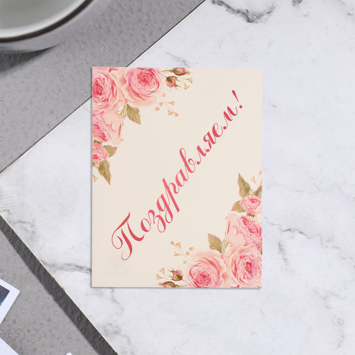 Цена за 20 шт. Мини-открытка "Поздравляем!" розовые розы, 7х9 см
