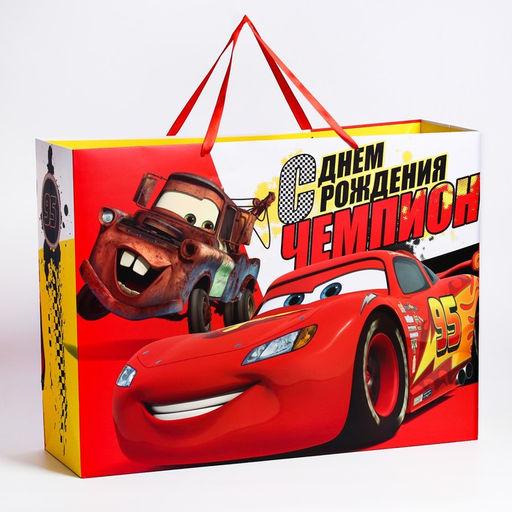 Пакет ламинированный горизонтальный, 46 х 61 см "Чемпиону", Тачки
