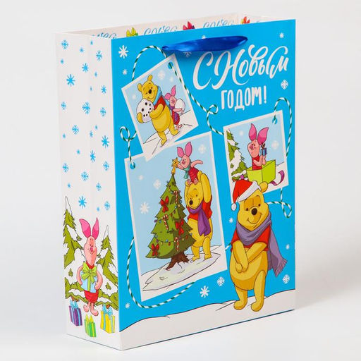 Пакет ламинированный вертикальный, 31 х 40 х 11,5 см "С новым годом!", Медвежонок Винни
