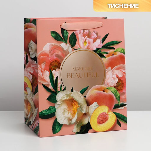 Пакет ламинированный с пластиковым окном Персики, 30,5 25 17,5 см