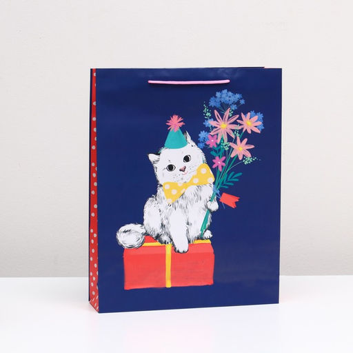 Пакет подарочный "Котенок на подарке" 33 х 42,5 х 10 см