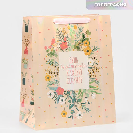 Пакет ламинированный вертикальный Будь счастлива, радужная голография, М 26 х 30 х 9 см