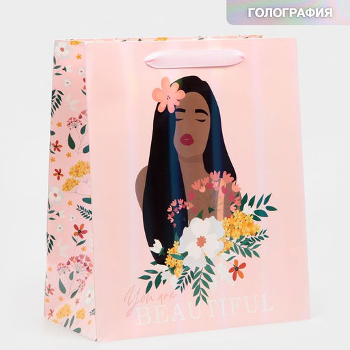 Пакет ламинированный Ты красивая, радужная голография, ML 23 х 27 х 11,5 см