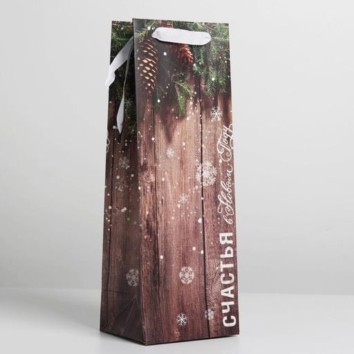 Пакет ламинированный под бутылку Счастье в Новом году, 13 x 36 x 10 см