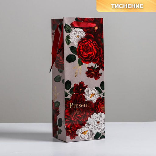 Пакет ламинированный под бутылку Flowers, 13 x 36 x 10 см