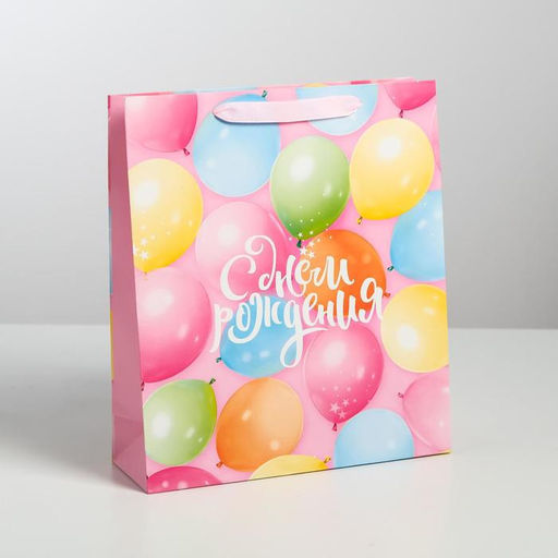 Пакет ламинированный вертикальный С днём рождения!, M 25.5 х 30 х 9 см