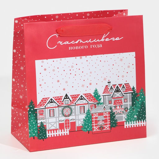 Пакет ламинированный квадратный Зима в городе, 22 22 11 см