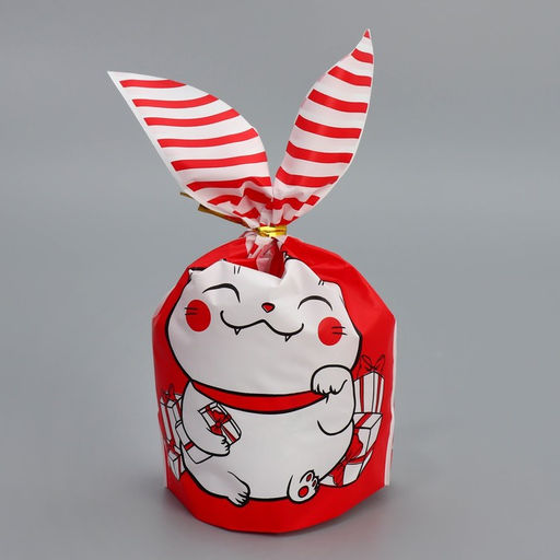 Цена за 20 шт. Мешок подарочный с ушками Новогодний котик, 12 11.5 см
