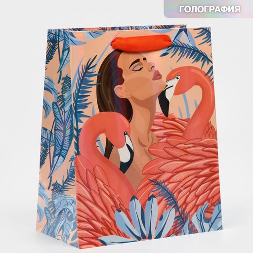 Пакет ламинированный Девушка с фламинго, радужная голография, MS 18 х 23 х 10 см