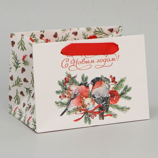 Пакет подарочный с широким дном Снегири, 20 14 13.2 см