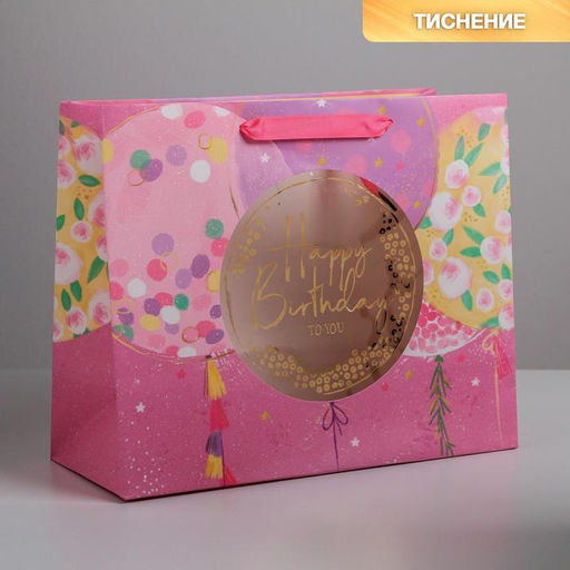 Пакет ламинированный с пластиковым окном Happy Birthday, 32,5 26,5 13,5 см