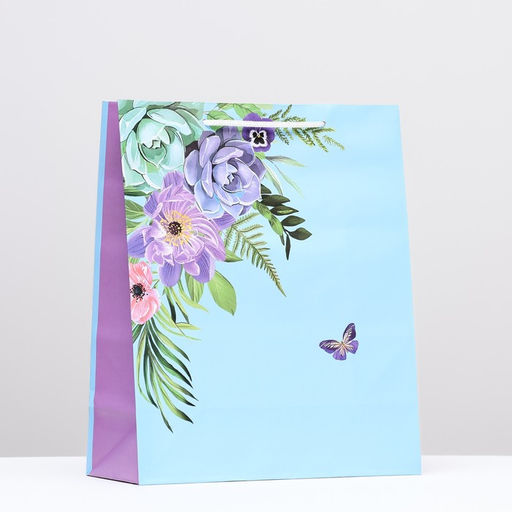 Пакет подарочный "Бабочка рядом с букетом" 26 х 32 х 12 см