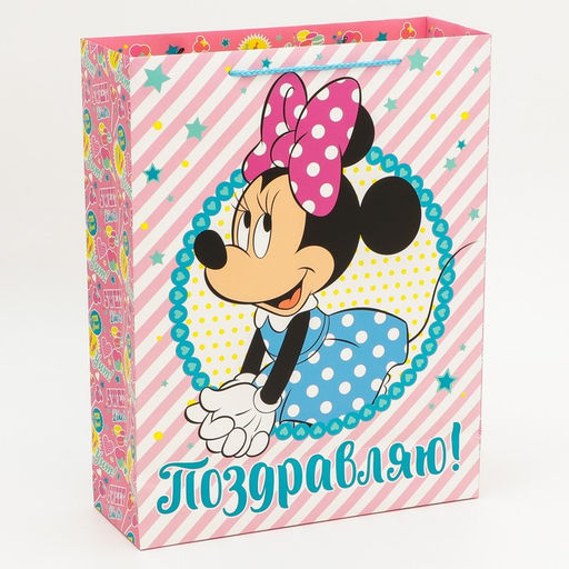 Пакет подарочный, 31 х 40 х 11,5 см "Поздравляю!", Минни Маус