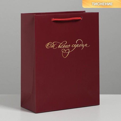 Пакет ламинированный вертикальный с тиснением От всего сердца, MS 18 23 8 см, с тиснением