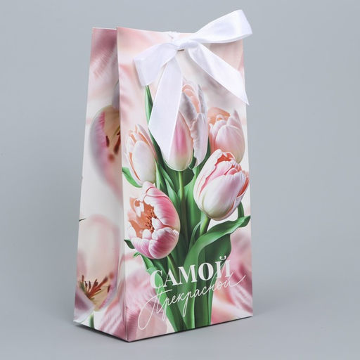 Пакет подарочный с лентой Самой прекрасной, 13 х 23 х 7 см