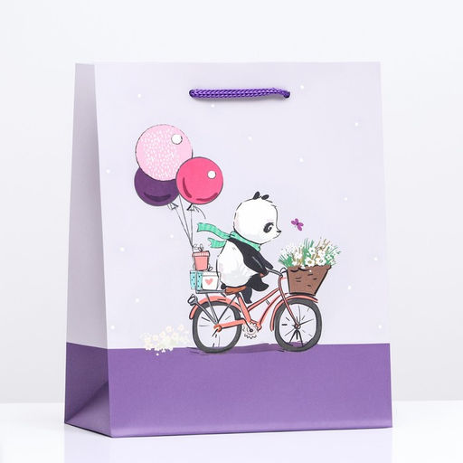 Пакет подарочный "Медведь на велосипеде с шарами" 18 х 22,3 х 10 см