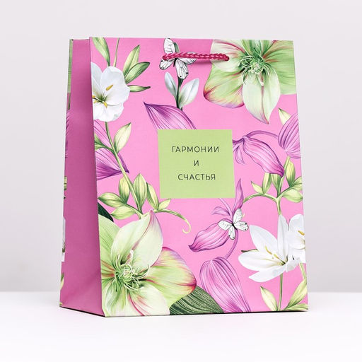 Подарочный пакет "Бабочки и цветы", 18 х 22,3 х 10 см