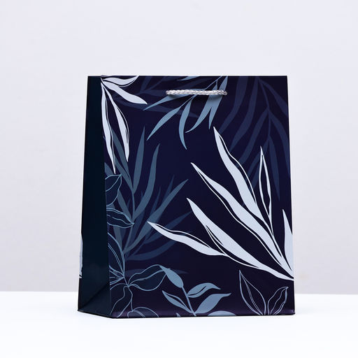 Пакет подарочный "Синие и белые цветы", 18 х 22,3 х 10 см