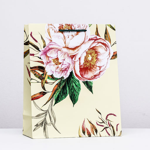 Пакет подарочный "Пионовидные розы", 26 х 32 х 12 см