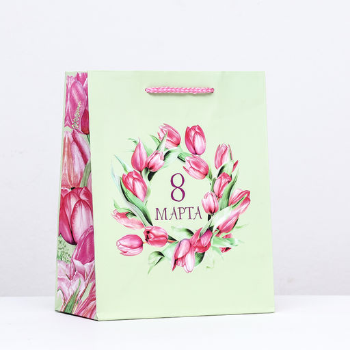 Пакет подарочный "8 марта", зеленый, 18 х 22,3 х 10 см
