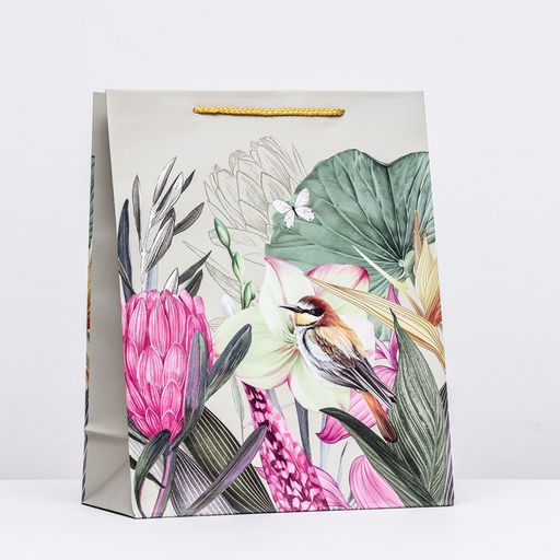 Пакет подарочный "Птичка в цветах", 26 х 32 х 12 см