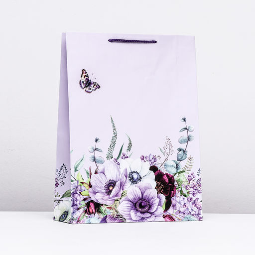 Пакет подарочный "Бабочки в цветах", 33 х 42,5 х 10 см