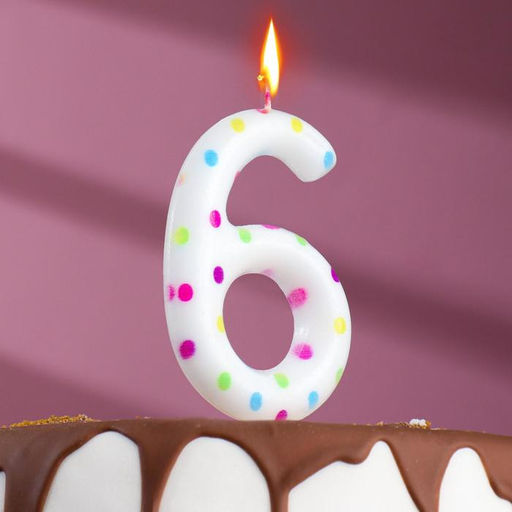 Свеча в торт на день рождения Конфетти, цифра "6" , ГИГАНТ, 9 см