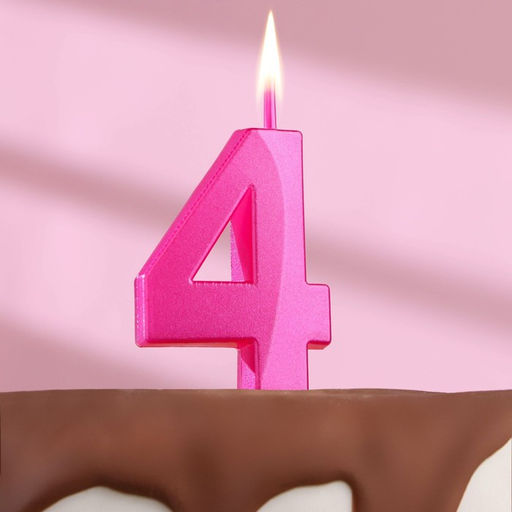 Цена за 5 шт. Свеча в торт на шпажке Грань, цифра "4", 5 см, розовая