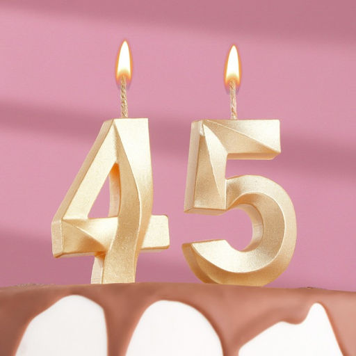 Свеча в торт юбилейная "Грань" (набор 2 в 1), цифра 45, цифра 54, золотой металлик, 6,5 см