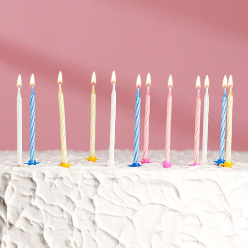 Цена за 10 шт. Свечи для торта Спираль, 5 см, набор: 24 шт и 12 подставок
