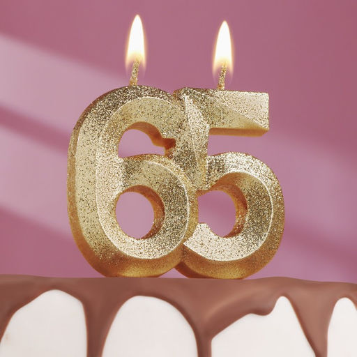 Свеча для торта юбилейная "Грань", цифра 65, золотой блеск, 8см