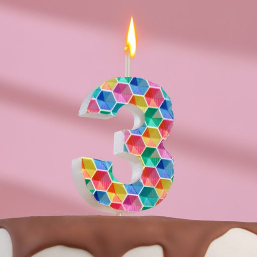 Свеча в торт на шпажке "Калейдоскоп", цифра 3, 7 см