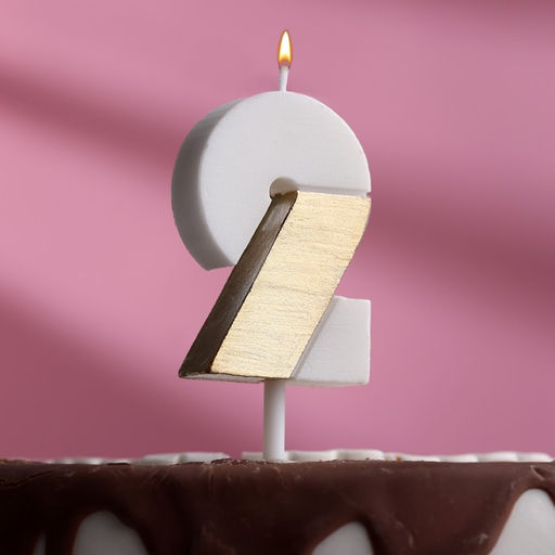 Свеча в торт "Манхеттен", цифра "2", белая с золотом, 5 см