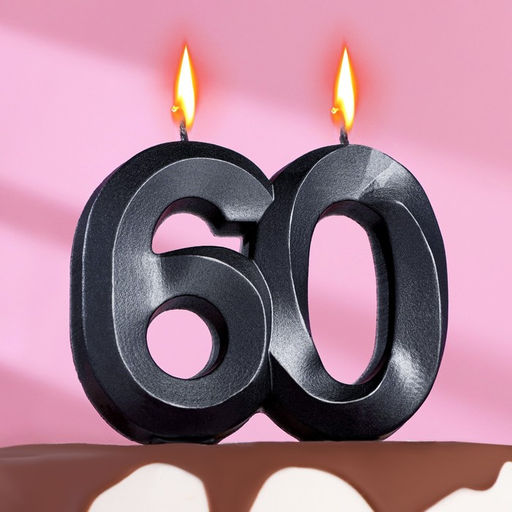 Свеча в торт юбилейная "Грань", ,цифра 60, , графит, 6,5 см