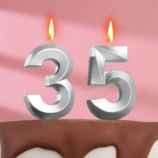 Свеча в торт юбилейная "Грань" (набор 2 в 1), цифра 35 / 53, серебряный металлик, 6,5 см