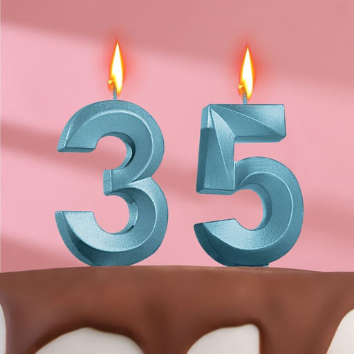 Свеча в торт юбилейная "Грань" (набор 2 в 1), цифра 35 / 53, голубой металлик, 6,5 см