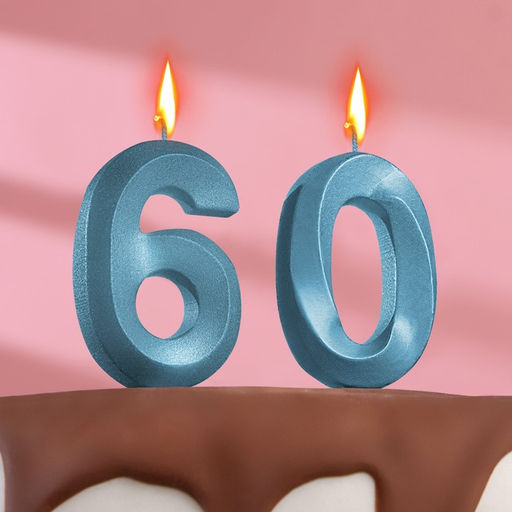 Свеча в торт юбилейная "Грань" (набор 2 в 1), цифра 60, голубой металлик, 6,5 см