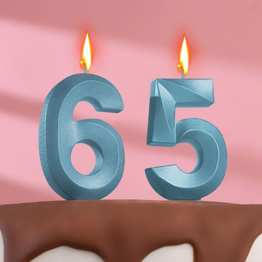 Свеча в торт юбилейная "Грань" (набор 2 в 1), цифра 65 / 56, голубой металлик, 6,5 см
