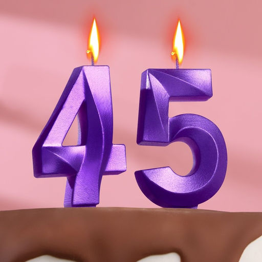 Свеча в торт юбилейная "Грань" (набор 2 в 1), цифра 45 / 54, фиолетовый металлик, 6,5 см