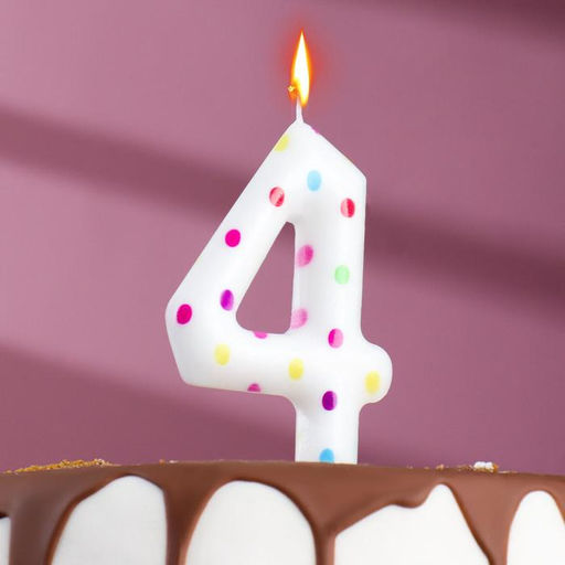Свеча в торт на день рождения Конфетти, цифра "4" , ГИГАНТ, 9 см