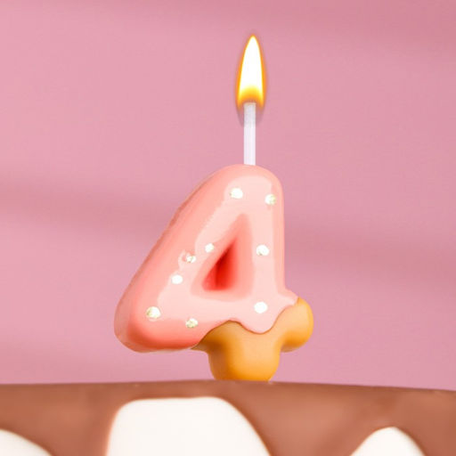Свеча в торт "Клубничная глазурь", цифра "4", розовая, 3,8 см