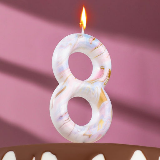 Свеча в торт "Белый мрамор", цифра "8", ГИГАНТ, 9 см