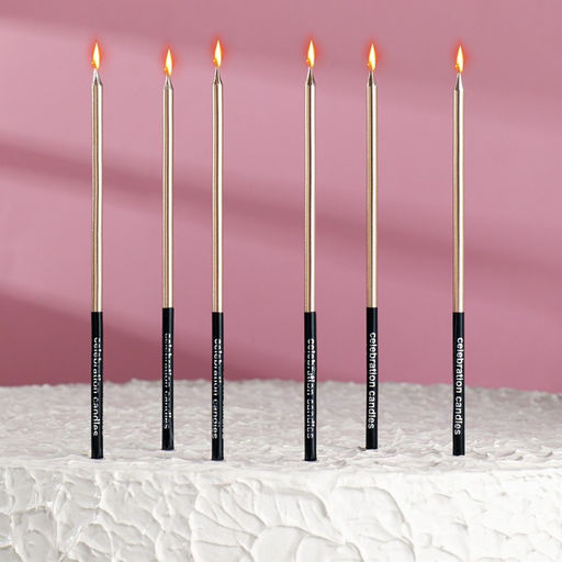Свечи в торт "Праздник", 6 шт, 14,5 см, золото с чёрным