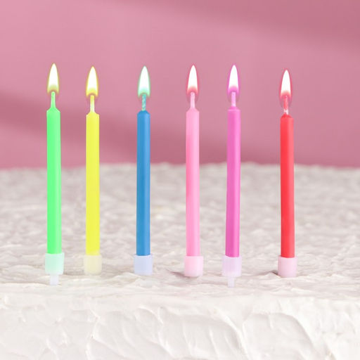 Набор свечей в торт 6 штук, с цветным пламенем, 6 см