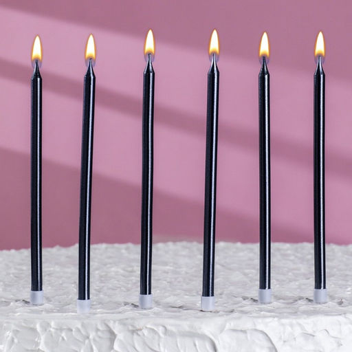 Свечи в торт "Ройс", 6 шт, высокие, 12,5 см, графит металлик
