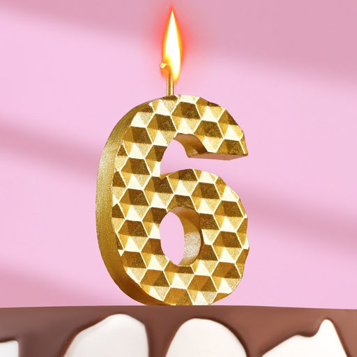 Свеча в торт на шпажке "Соты", цифра 6, 7 см, золото
