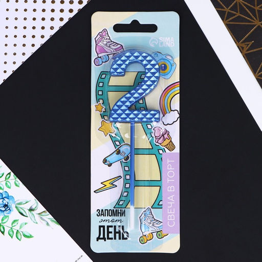 Свеча в торт 2, синяя