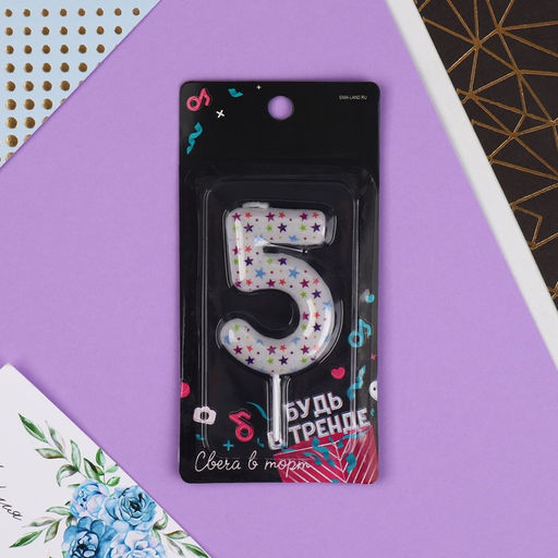 Свеча в торт цифра 5, звёздочки