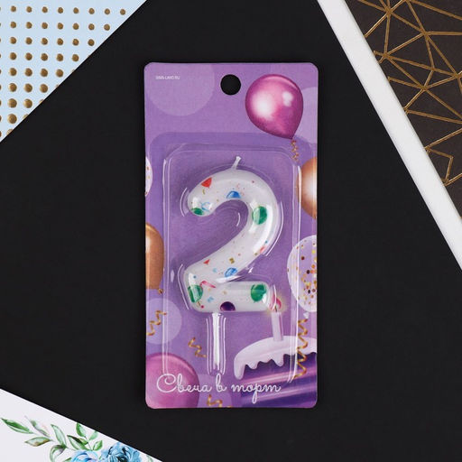 Свеча в торт цифра 2, с шарами