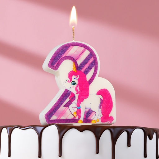 Свеча в торт "Единорог", цифра 2, фиолетовая, 6,5 см